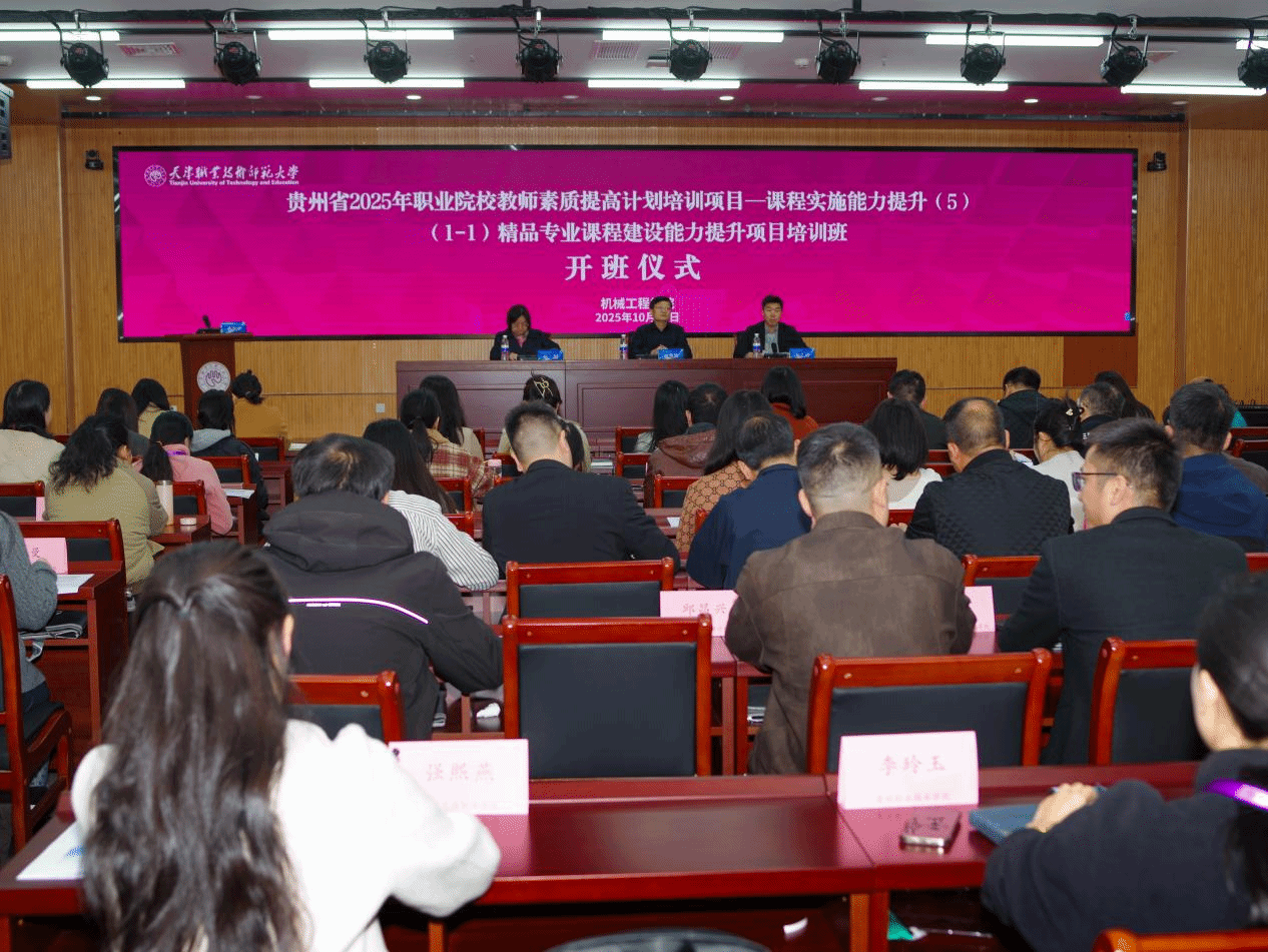 本网讯【通讯员 董晓传】为深入贯彻落实中共中央办公厅、国务院办公厅印发的《关于深化现代职业教育体系建设改革的意见》以及《教育部 财政部关于实施职业院校教师素质提升计划(2021- 2025年)的通知》等文件精神,10月19日,由贵州省教育厅主办、我校机械工程学院承办的贵州省2025年职业院校教师素质提高计划—课程实施能力提升培训项目在我校顺利开班。我校继续教育学院院长张久诗、机械工程学院院长戚厚军、机械工程学院副院长赵巍受邀出席开班仪式,机械工程学院项目负责人董晓传主持开班仪式。
