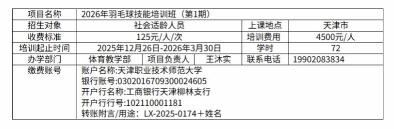 LX-2025-0174 2026年羽毛球技能培训班(第1期)
