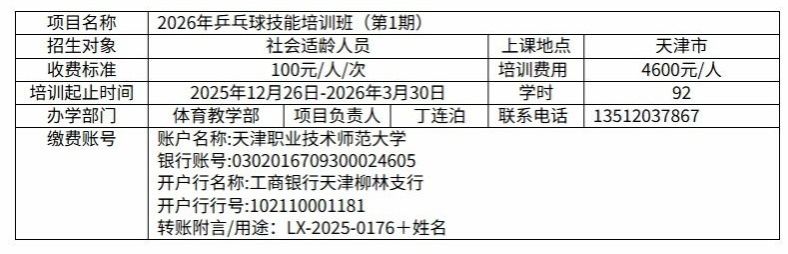 LX-2025-0176 2026年乒乓球技能培训班(第1期)
