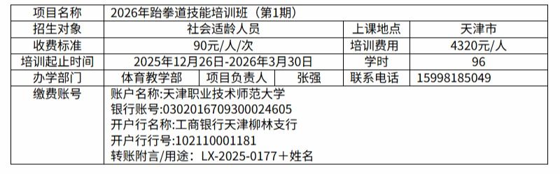 LX-2025-0177 2026年跆拳道技能培训班(第1期)