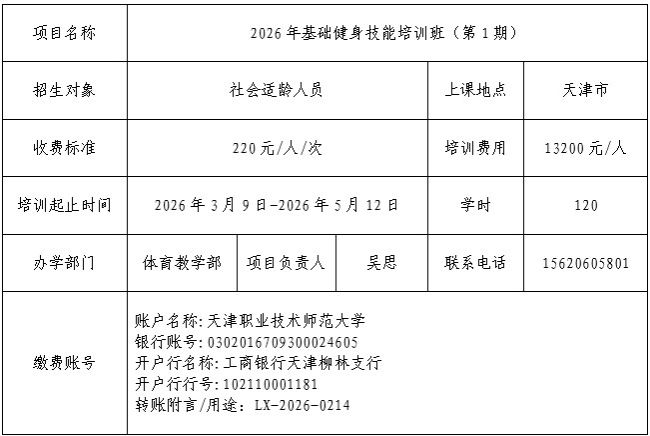 LX-2026-0214 2026年基础健身技能培训班(第1期)