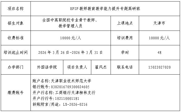 LX-2026-0216 EPIP教师教育教学能力提升专题高研班